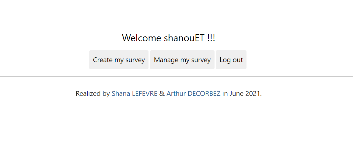 Après d'être connecté, l'utilisateur atterit sur cette page. Delà, il peut créer un sondage, voir les résultats.