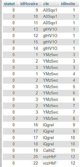On vérifie dans la base de données que tous les horaires ont bien été entrés dans la table horaire :