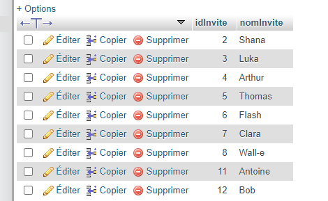 On vérifie dans la base de donnée que l'invité a bien été créé et que ses disponibilités ont bien été entrées dans les tables invite et dispo réciproquement :